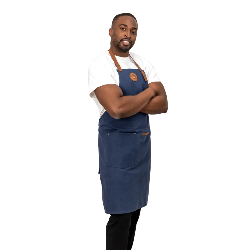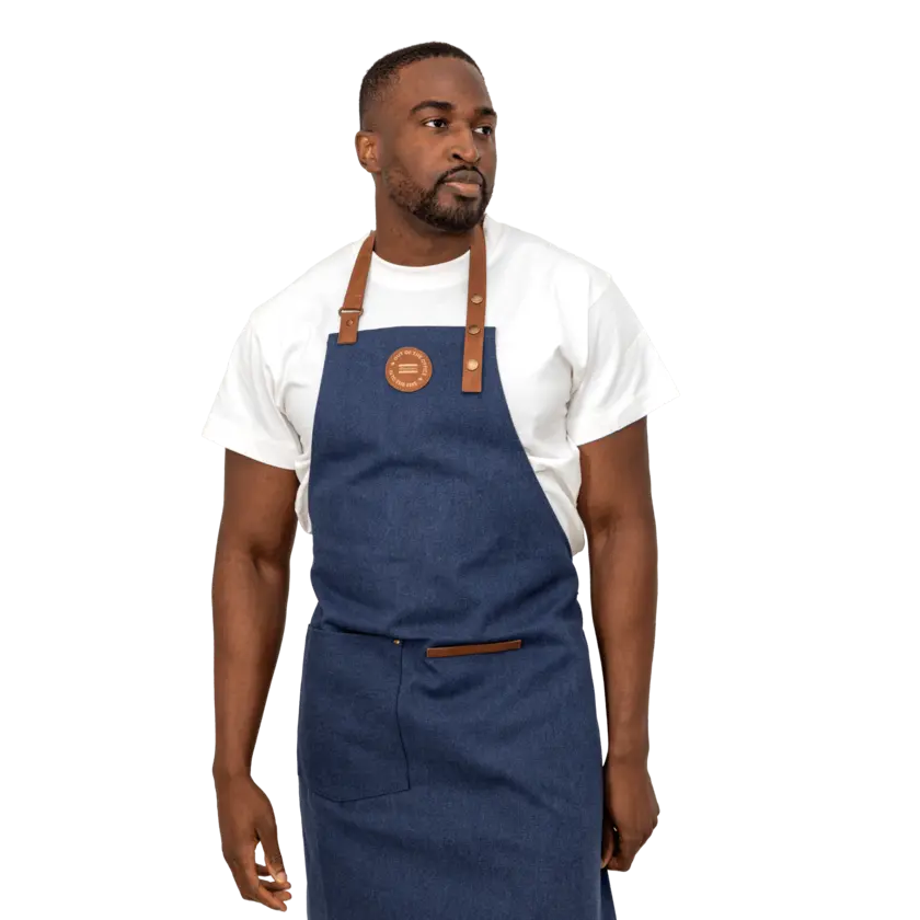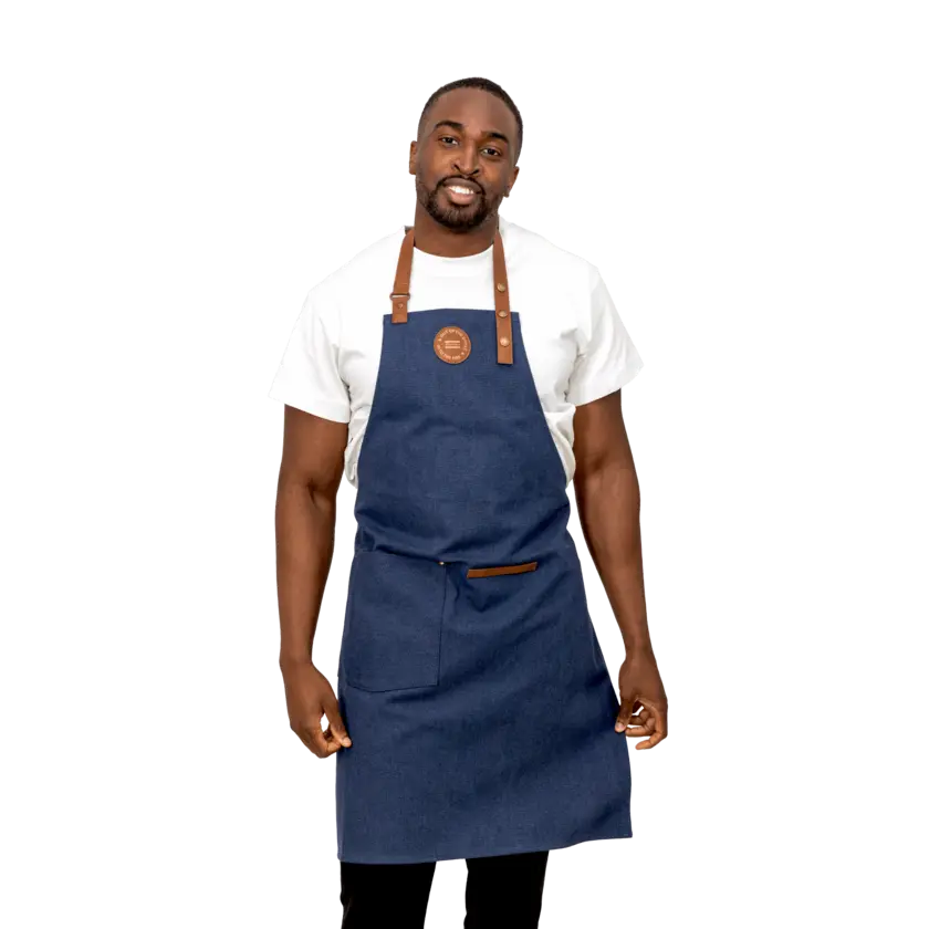 Apron made from 47% GRS certified recycled cotton and 32% GRS certified polyester. This stylish apron is a practical kitchen accessory with a wonderful design. The apron has a pocket on the front and a loop for hanging utensils or kitchen towels, so you have everything at hand when you're in the middle of cooking. The apron has a soft and adjustable neck strap for increased comfort.