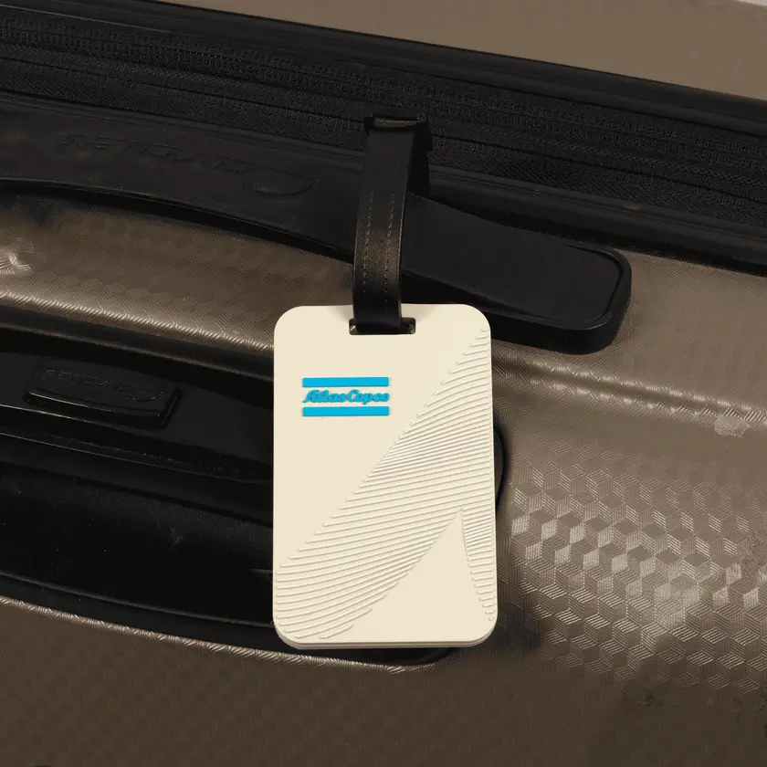 This luggage tag is made from PVC and features a colorful all-over print and a raised logo. A must-have for frequent travelers who want their bags to be easy to track and identify. Comes in a paper package.
