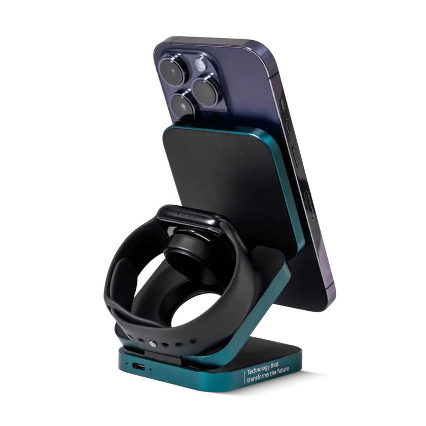 Charge your devices in style with this 3-in-1 15W Charger, crafted from recycled materials. This sleek, foldable charger powers your phone, smartwatch( only Apple watch), and earbuds simultaneously. Ideal for eco-conscious tech users, it's portable, efficient, and environmentally friendly—perfect for modern, sustainable lifestyles.